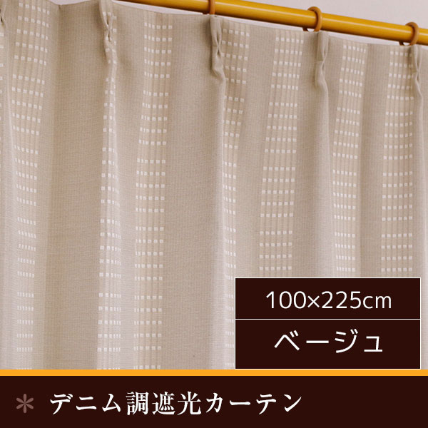 デニム 遮光カーテン / 2枚組 100×225cm ベージュ / 洗える 形状記憶 『オーチャード』 九装