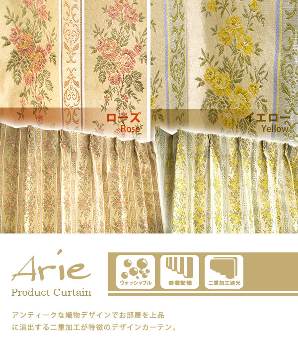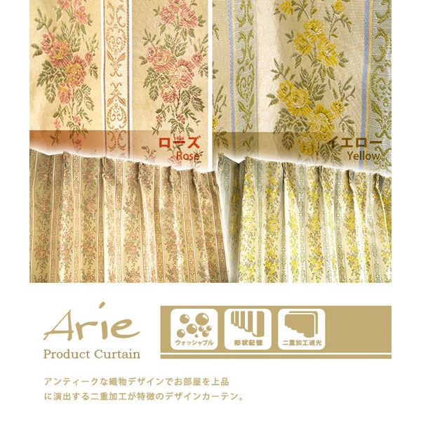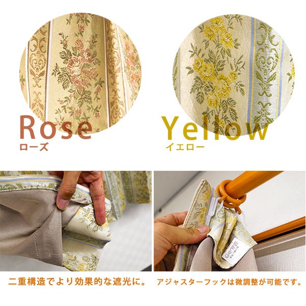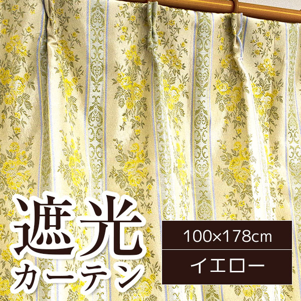 エレガントで華やかな 遮光カーテン 目隠し / 2枚組 100×178cm イエロー / 3級遮光 二重加工 洗える 形状記憶 『メルシャ』 九装
