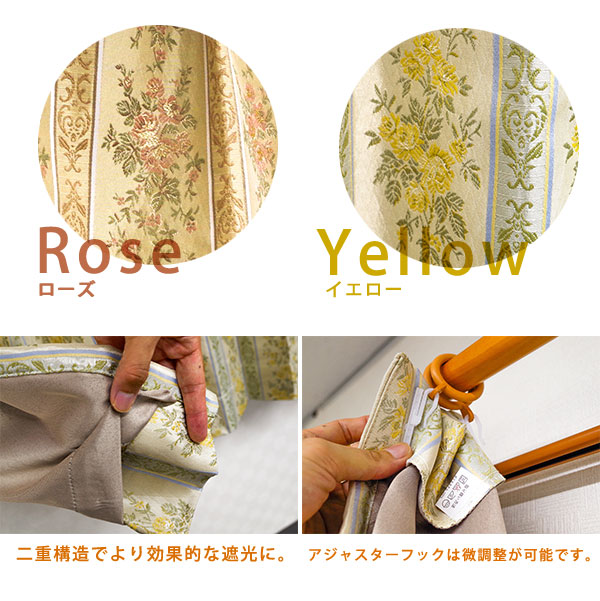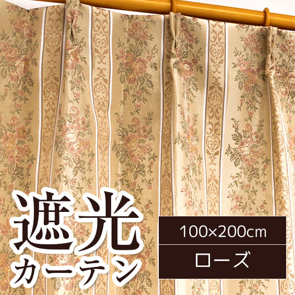 エレガントで華やかな 遮光カーテン 目隠し / 2枚組 100×200cm ローズ / 3級遮光 二重加工 洗える 形状記憶 『メルシャ』 九装