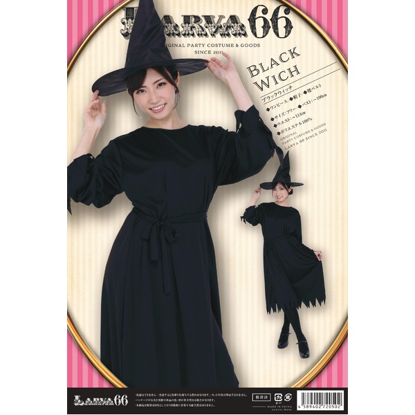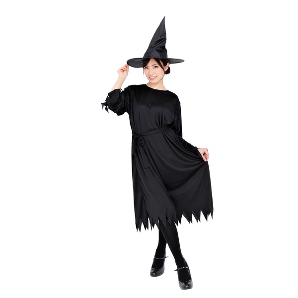 全身黒の魔女コスチュームです。大人っぽく黒で決めたい方にお勧めです。