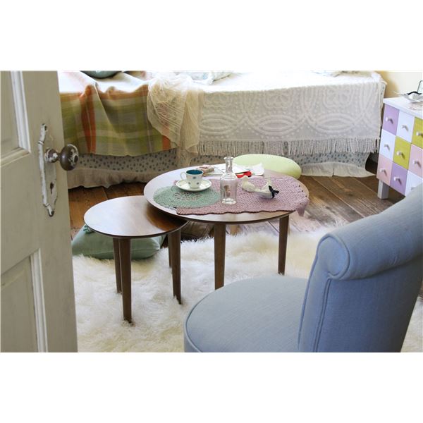 ローテーブル 入れ子テーブル 直径60cm 円形 ウォールナット 木製 トムテ ラウンドネストテーブル リビング ダイニング