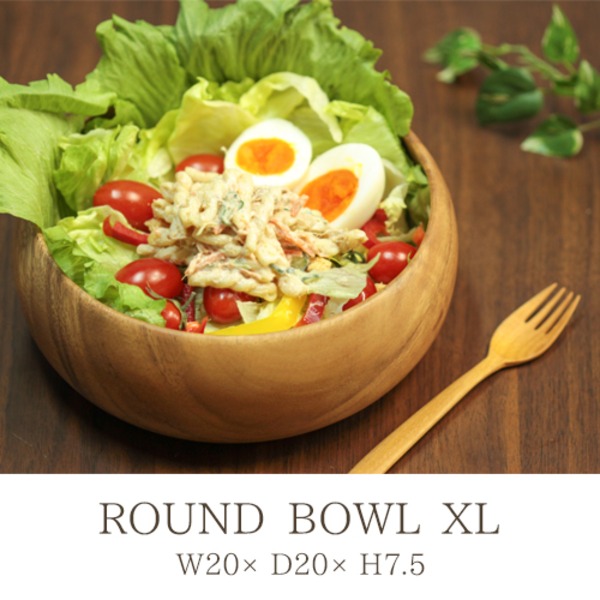 ボウル ボール XLサイズ 直径20cm 円形 ラウンド ブラウン 木製 アカシア ダイニング キッチン用品 調理器具【代引不可】