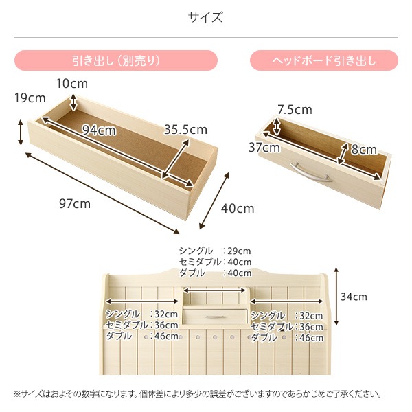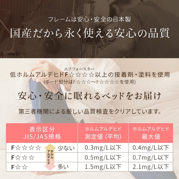 ヘッドボードと引き出しは国内工場で組み立て済みの完成品だから