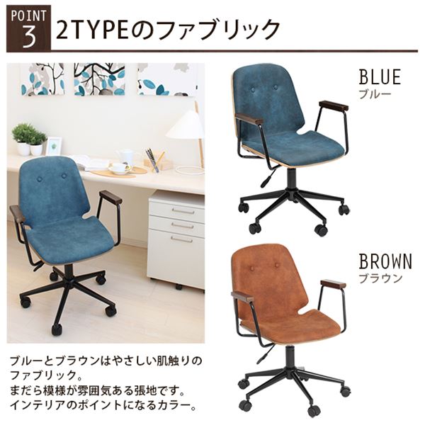 オフィスチェア/デスクチェア 【ブラウン 幅58cm】 張地ファブリック スチール脚 肘付き キャスター付 HOMEチェア 〔リビング〕【代引不可】
