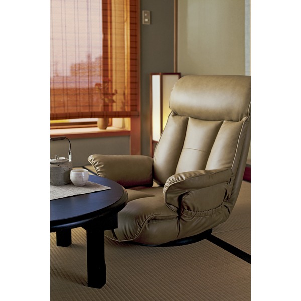 座椅子 幅65cm キャメル 合皮 肘付き ハイバック リクライニング 日本製 スーパーソフトレザー座椅子 昴 完成品 リビング【代引不可】