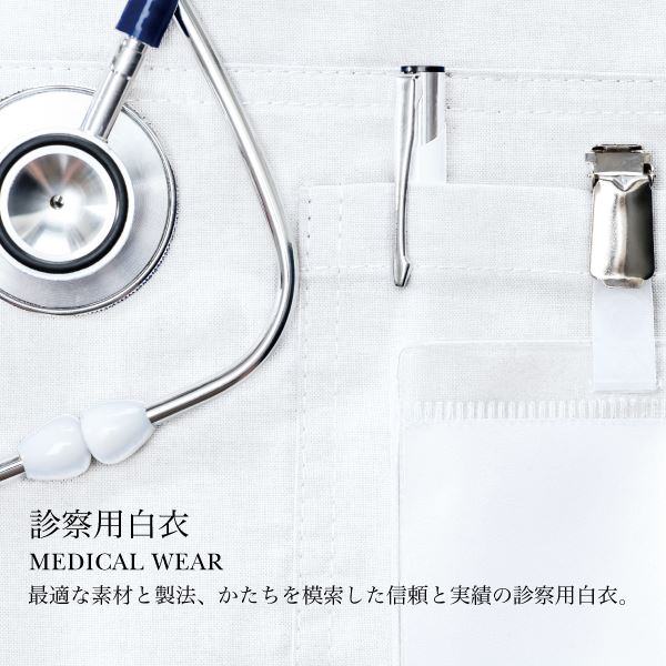 診察用白衣は診察のみならず、実験用としても使用されている白衣ですが、重要な場所で多く使用されるため、実績・信頼のない白衣は仕使用できません。この診察用白衣は学校などの機関でも長く使用されている信頼と実績のある診察用白衣です。
