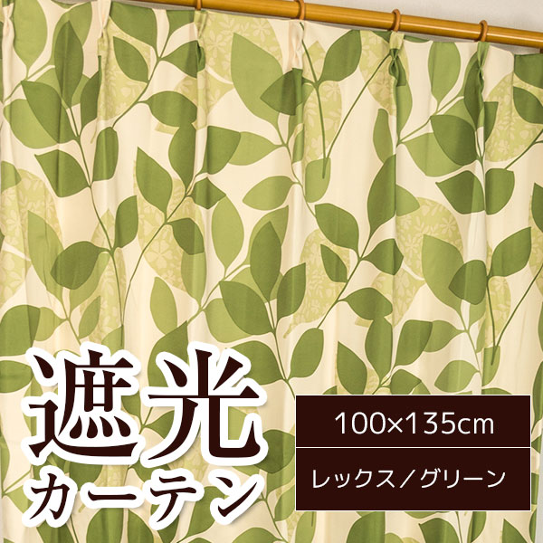 遮光カーテン サンシェード 2枚組 / 100cm×135cm グリーン / リーフ柄 洗える 形状記憶 『レックス』 九装
