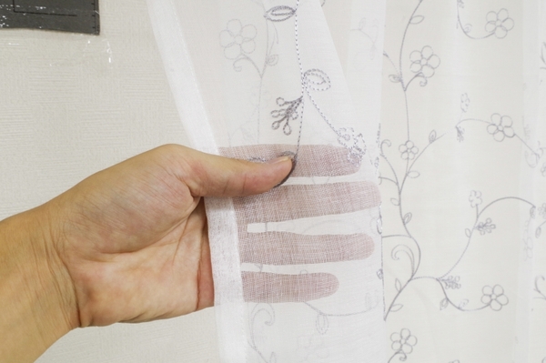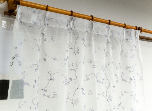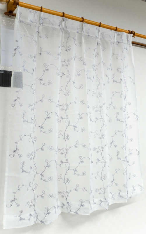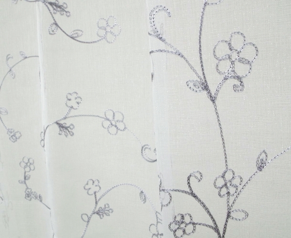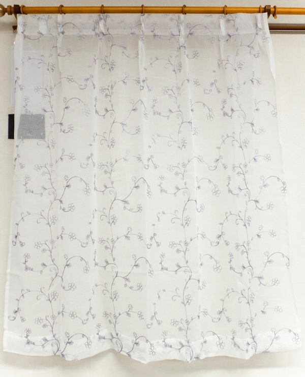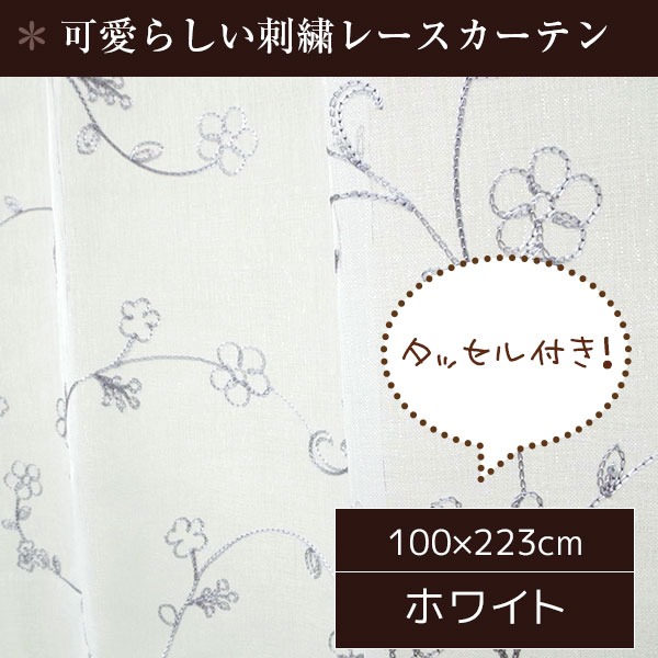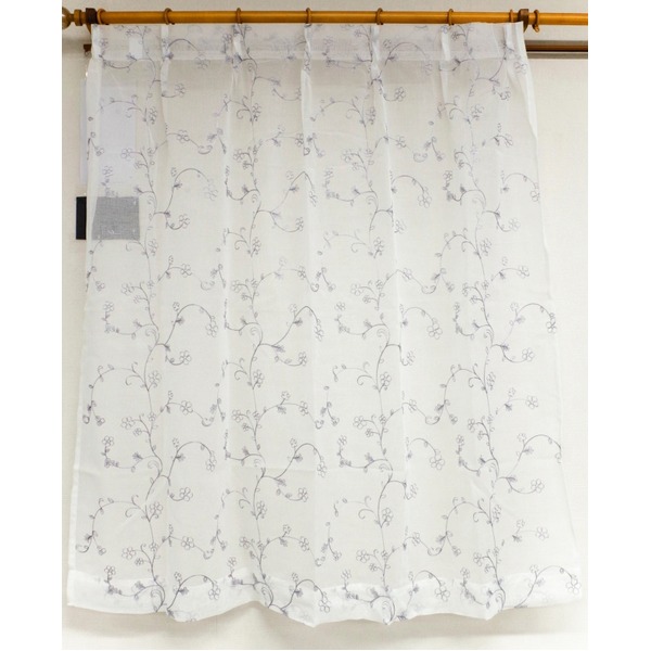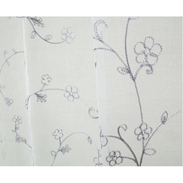 刺繍 レースカーテン 2枚組 / 100cm×223cm / ホワイト 花柄 洗える アジャスターフック 『ホッパー』 九装