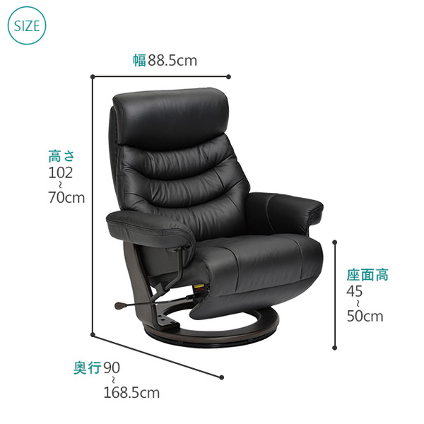 リクライニングチェア 幅88.5cm 1人掛け 本革 フットレスト 肘付き 木製 フレーム ウレタン スチール リビング ダイニング【代引不可】