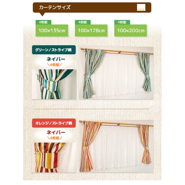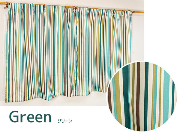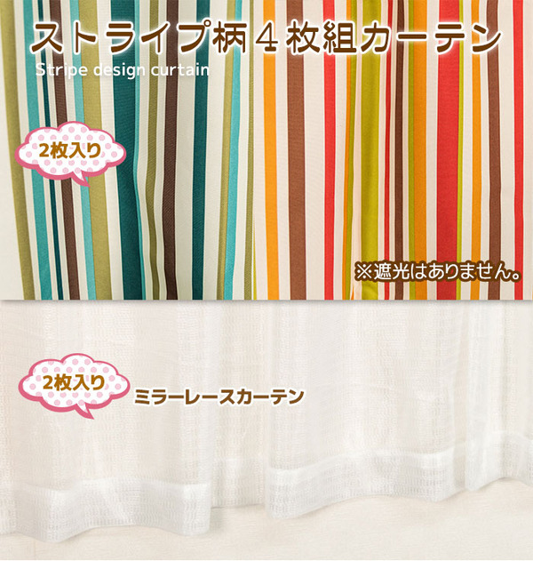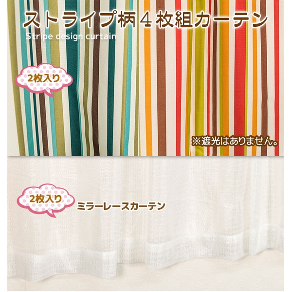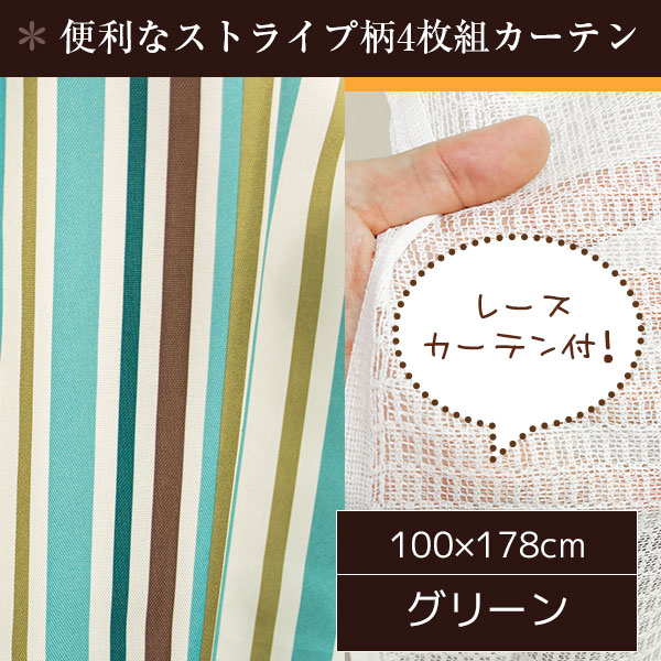カーテン ミラーレース 4枚組 4枚セット / 100cm×178cm グリーン / ストライプ柄 洗える アジャスターフック 『ネイバー』 九装