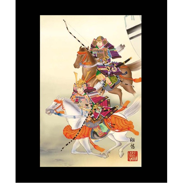 白馬に跨り一軍を率いる勇壮果敢な若武者の絵を飾り、大切なわが子の逞しい成長と大きな夢を託します