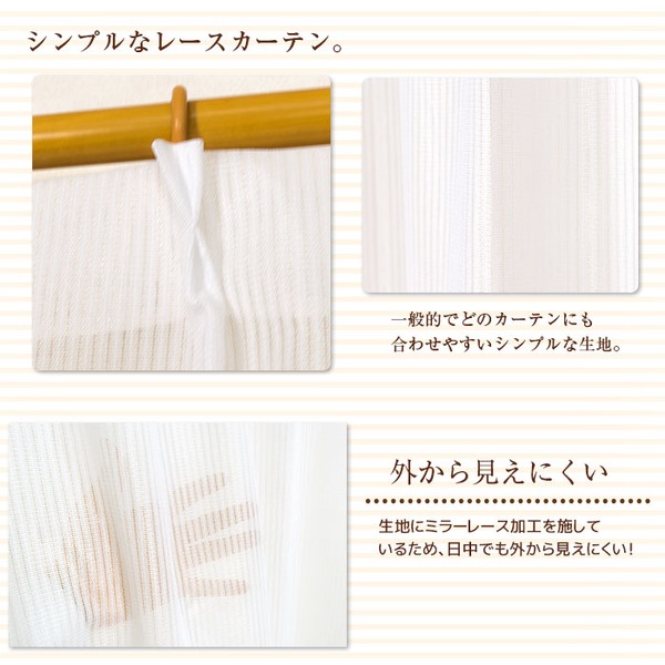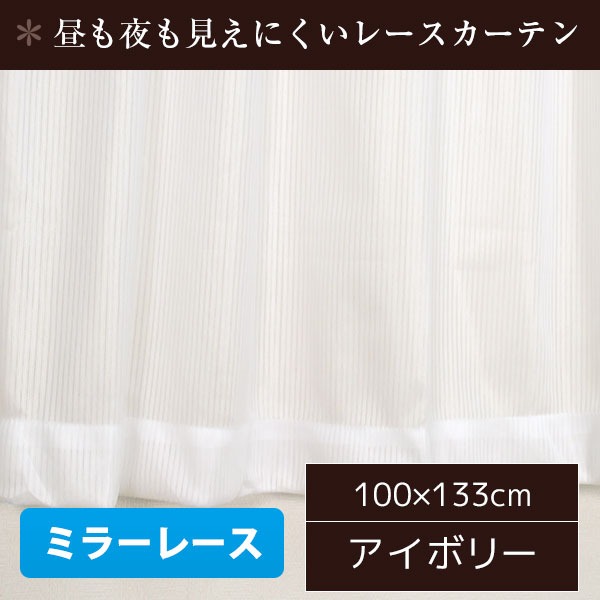ミラーレースカーテン 2枚組 / 100cm×133cm アイボリー / 洗える アジャスターフック付き 『ウィッシュ』 九装