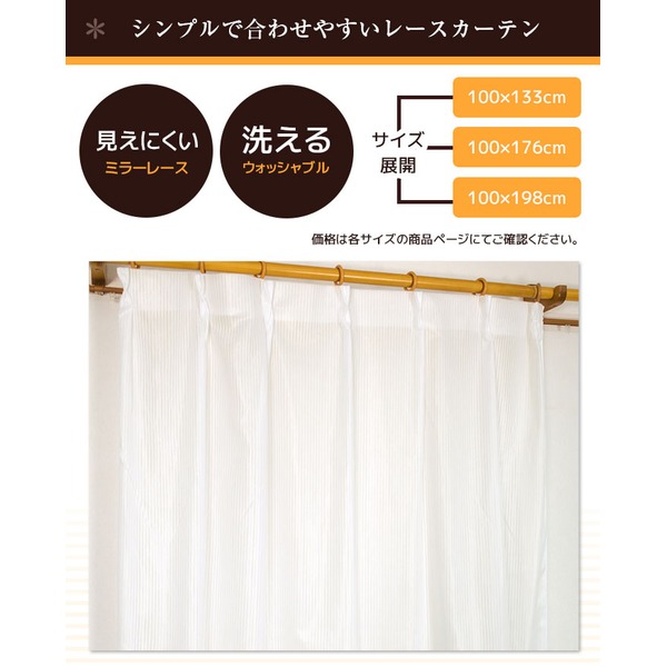 ミラーレースカーテン 2枚組 / 100cm×198cm アイボリー / 洗える アジャスターフック付き 『ウィッシュ』 九装