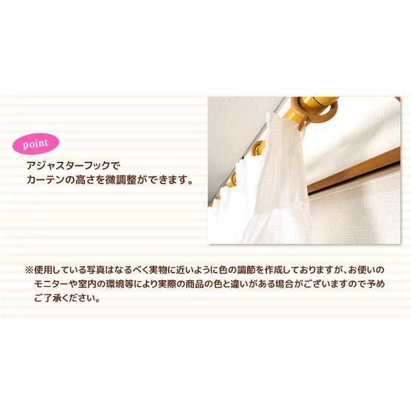 フック:※フックはカーテンに予め取り付けられています。アジャスターフックは5mm単位で調整可能です。