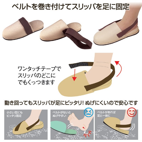ぬげにくい安全スリッパ/防災グッズ 【Lサイズ 適応サイズ:27cmまで】 底面:防護板入り 飾りベルト付き