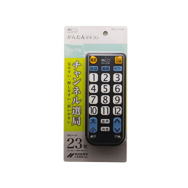 (まとめ) MCO TV用簡単リモコン シンプルタイプ 23社対応 MRC-01/BK 【×3セット】