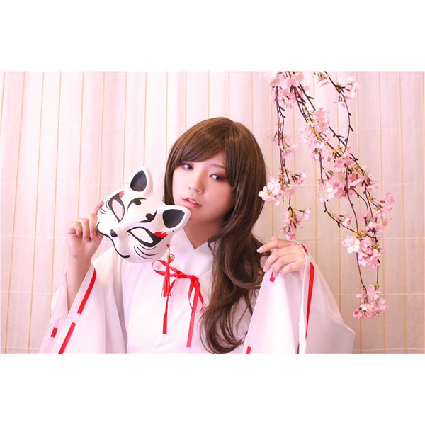 和風 コスプレ衣装/コスチューム 小物 【きつね面 白 黒耳】 半面タイプ 『花鳥風月』