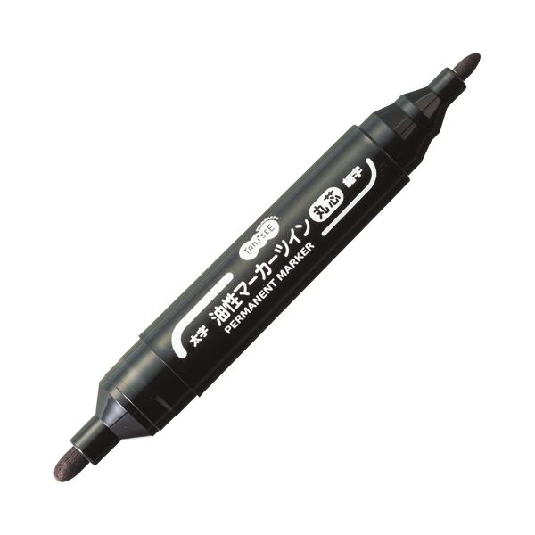 (まとめ) TANOSEE キャップ式油性マーカーツイン 太字(丸芯)+細字 黒 1セット(10本) 【×5セット】