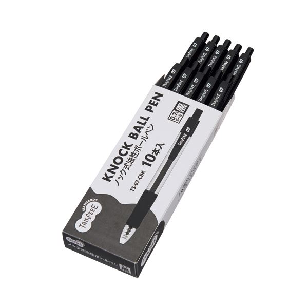(まとめ) TANOSEE ノック式油性ボールペン0.7mm 黒 (軸色:クリア) 1箱(10本) 【×10セット】
