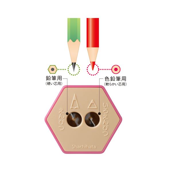 ●鉛筆と色鉛筆等、芯の硬さや用途に合わせて2種類の削り角度が選べます。