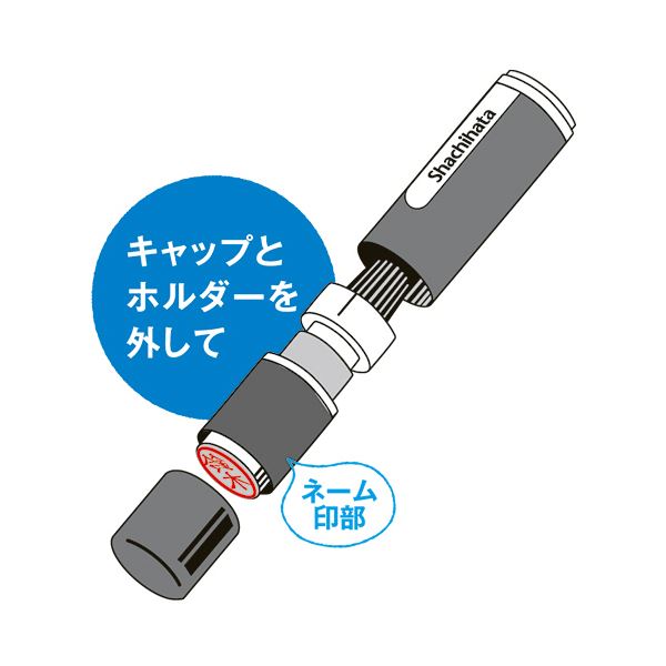●キャップとホルダーを外して、ネーム印部に簡単装着!