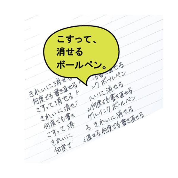 ●きれいに消せて、何度でも書き直せるゲルインクボールぺン。ボール径0.5mm、インク色はオフブラックです。