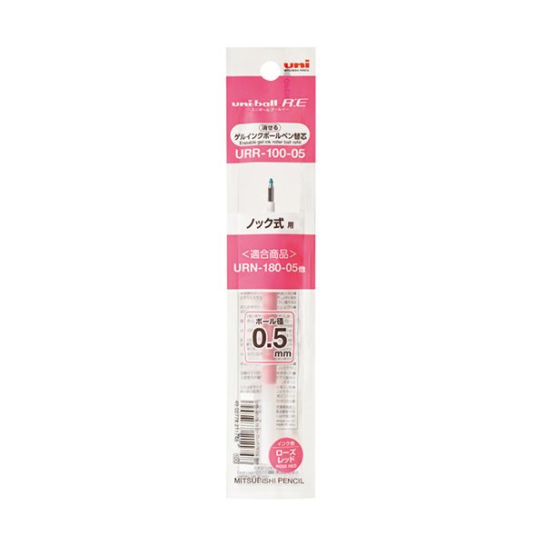 (まとめ) 三菱鉛筆 消せる ゲルインクボールペンユニボールR:E 替芯 0.5mm ローズレッド URR10005.15 1セット(10本) 【×5セット】