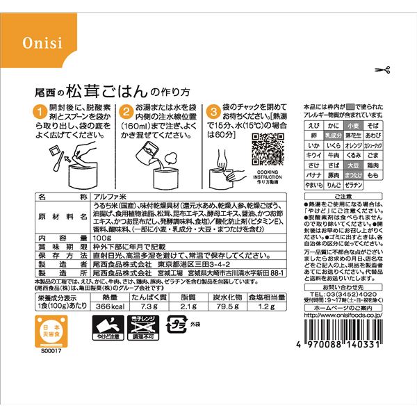 ■製造所:尾西食品株式会社 宮城工場宮城県大崎市古川清水字新田88-1