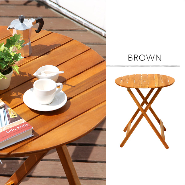 アカシア ラウンドテーブル/折りたたみテーブル 【幅70cm】 円形 木製 オイルステイン仕上げ 〔ガーデン〕【代引不可】