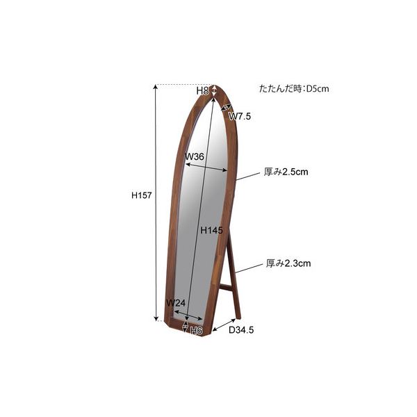 スタンドミラー 全身姿見鏡 幅48cm 木製 アカシア 5mm飛散防止ミラー サーフミラー ベッドルーム 寝室 玄関 リビング 店舗【代引不可】