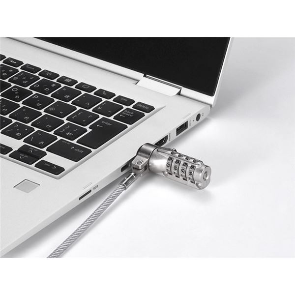 ■パソコンや液晶モニター、外付けHDDDなどを盗難から守る■キー不要で紛失の心配の無いダイヤル式■ワイヤーの取り回しがしやすい360度回転機構・90度首振り機構■ワイヤーにキズ防止コーティング