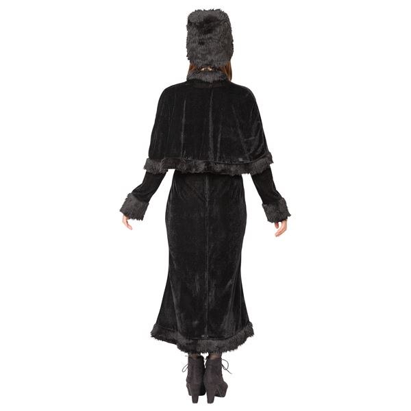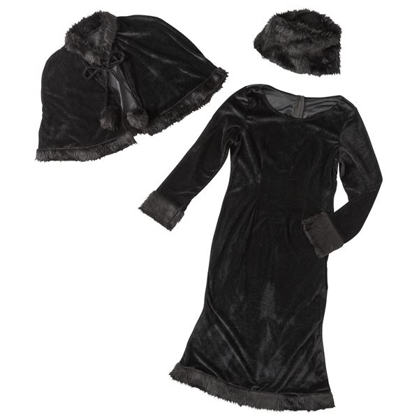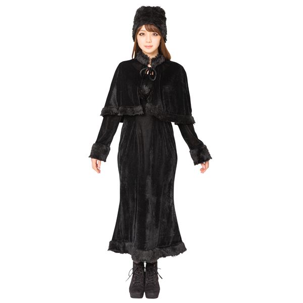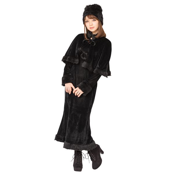 誰もが知ってるあのキャラになりきれる!?なりキャラ研究部シリーズ!イベント、宴会、学園祭、ハロウィン等、さまざまなシーンで使用していただけます。豪華なブラックファーがポイントのコスチュームセットです。ワンピースは長袖で丈も長めなので、寒い時期にも安心。