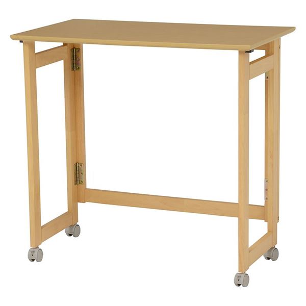 折りたたみテーブル ローテーブル 約幅80cm×奥行40cm×高さ71cm ナチュラル 木製 キャスター付き リビング【代引不可】