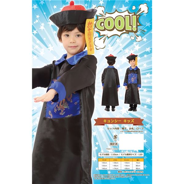 大人のコスチュームで大人気だったキョンシーのキッズ版!着やすいかぶりのコスチュームで、あっという間に可愛いミニキョンシーに変身。家族でおそろいコスチュームもおすすめ!