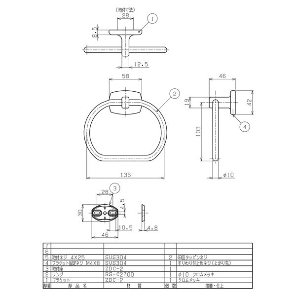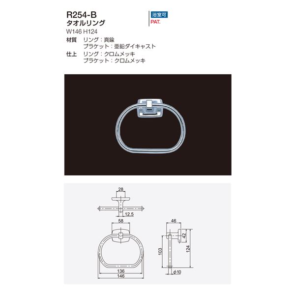 タオルリング/建築金物 【W146×H124mm】 リング:真鍮 クロムメッキ 浴室可 〔業務用 建材 建築金具〕