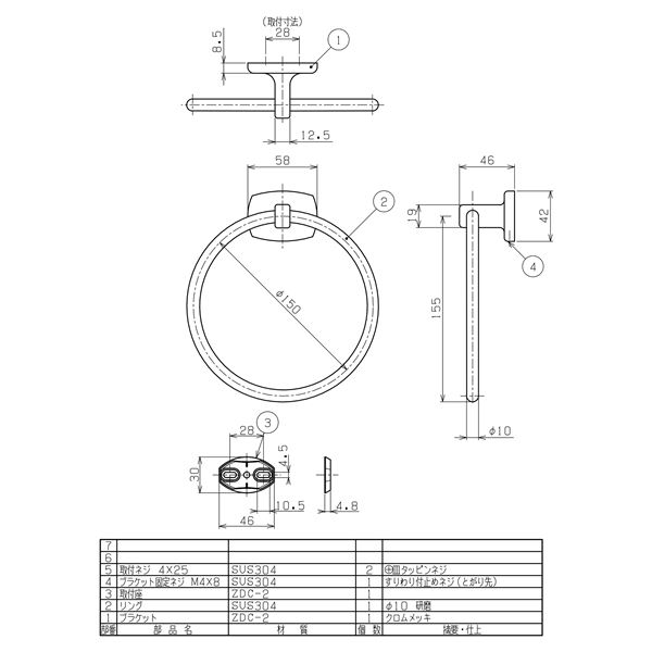 タオルリング/建築金物 【W160×H171mm】 リング:ステンレス 浴室可 〔業務用 建材 建築金具〕