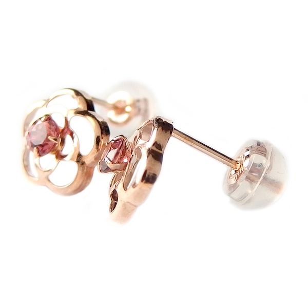 ピアス ピンクトルマリン K10 ピンクゴールド 10月 誕生石 フラワーモチーフ 花 スタッド シンプル かわいい フラワー シリコン製ダブルロックキャッチ