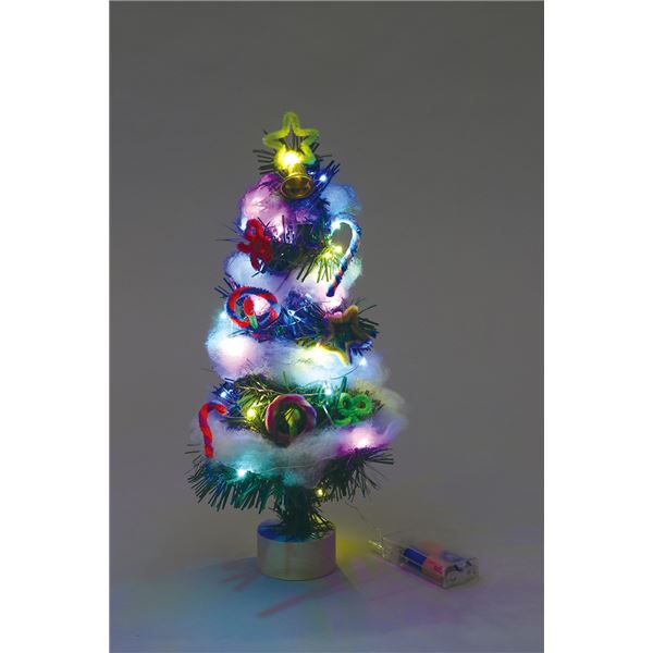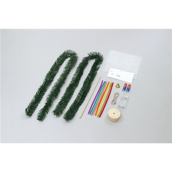 もみの木モール(約1m)×2、モール(約φ0.6×24cm)8色組×1、ベル×1、ツリー台×1、丸棒×1、綿×1、イルミネーションライト×1