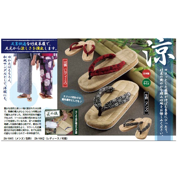 素足に竹皮の涼感が気持ちよく、サラッした足裏への感触が汗ばむ季節に爽やか。