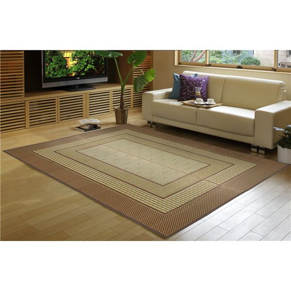 い草 ラグマット 絨毯 約191×250cm ブラウン 日本製 裏貼り仕様 滑りにくい加工 縁:綿100% エルモード リビング ダイニング【代引不可】