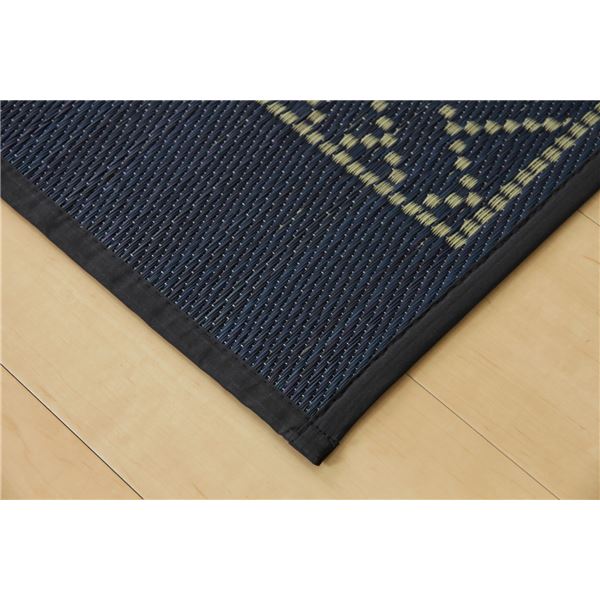 い草 ラグマット 絨毯 約176×220cm ブルー 裏貼り 表面:イ草100% 縁:綿100% 伊勢 いせ リビング ダイニング【代引不可】