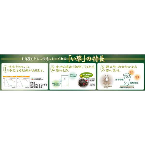 ペルシャ絨毯のような細やかな柄をデザインしたイ草ラグ。お部屋をモダンに演出したい方にもおすすめです。表面は、い草の湿度調整機能でサラリと爽やかな肌触り。裏面は、不織布加工で床を傷つけにくくなっています。