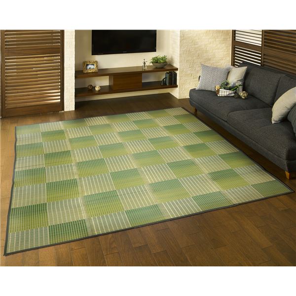 い草 ラグマット 絨毯 約240×240cm グリーン 表面:イ草100% 裏貼り 折りたたみ可 クレパス リビング ダイニング 模様替え【代引不可】