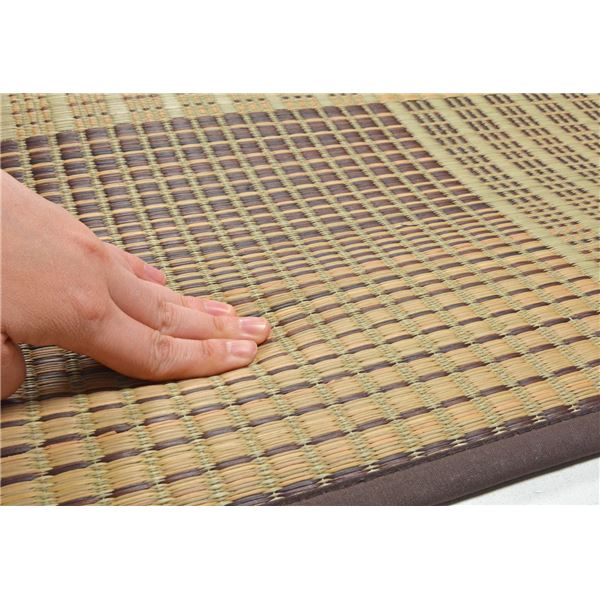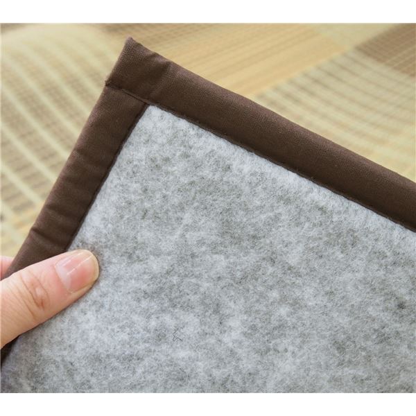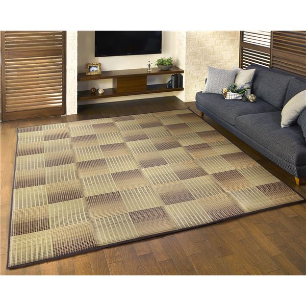和モダンテイストのパッチ柄い草ラグ。中材にウレタンを約8mm入れた3層構造のい草ラグ。季節によって敷物を替えたい方に嬉しいコンパクトに折りたためる仕様です。