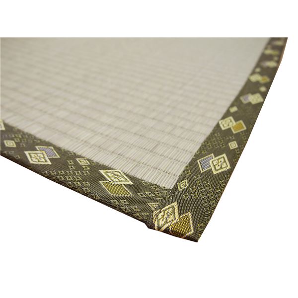 高品質な国産のい草と日本の職人の技術が織りなす引目織の上敷き。引目織は、たて糸が表に出ないので汚れにくく表面も滑らかで、ごみがたまりにくい特徴があります。国産い草を使用して畳と同じ織り方で織り上げ、強度のある縁で縫製しています。