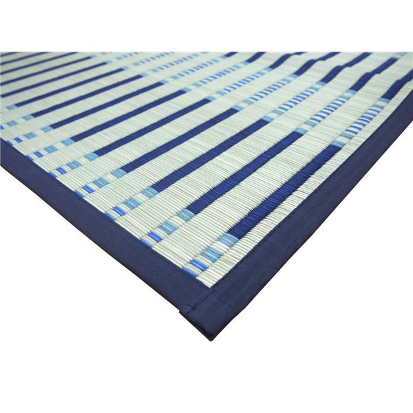 い草 ラグマット 絨毯 江戸間 6帖 ブルー 縁:綿100% 高耐久性 掛川織 柄上敷き 津弥 つや リビング ダイニング【代引不可】