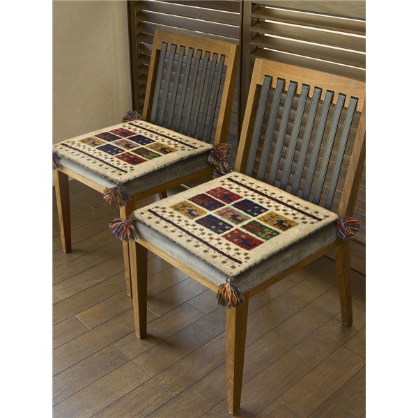 椅子クッション 約40×40cm マスタード ウール100% 保温性 調湿効果 オールシーズン対応 ギャッベ チェアパッド リビング【代引不可】