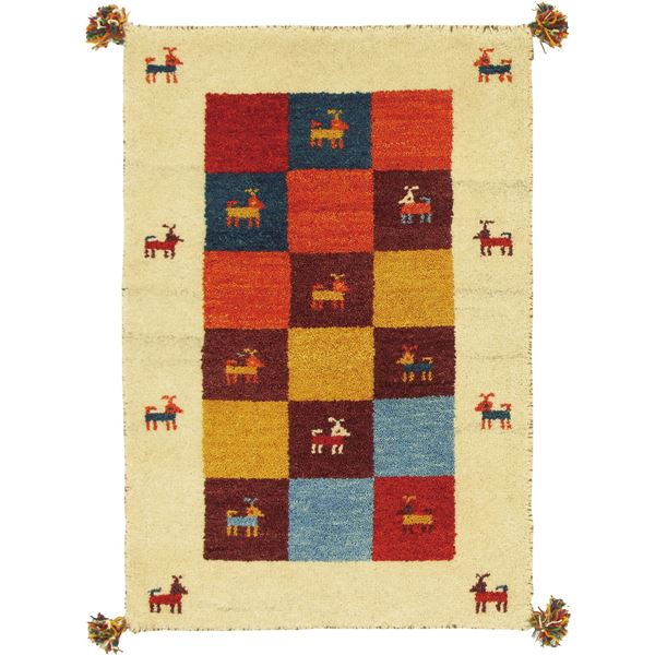 ラグマット 絨毯 約60×90cm ミックス ウール100% 保温性 調湿効果付き オールシーズン対応 ギャッベ リビング【代引不可】