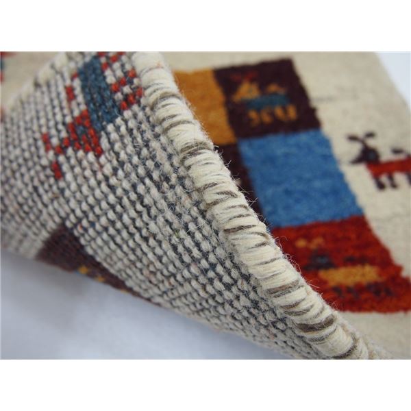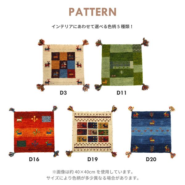 丁寧な手織り手法で使用時間の経過とともに味わいが深まる「ギャッベ」。ウール素材は暖かく冬に適しているイメージがありますが、温度差の激しい環境で育った羊から取れる羊毛(ウール)は、保温性と湿度を調節する機能に優れています。夏の湿気にも適しておりオールシーズンご使用いただける素材です。しっかりとした密度&厚み約2cm。ふかふかの踏み心地をお楽しみいただけます。裏面も同素材で床にやさしい仕様です。四隅にはフリンジをあしらい、愛らしさをプラスしました。