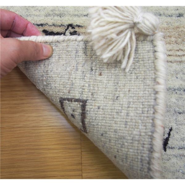 自然の恵みをそのまま生かした無染色ウールの特別なギャッベ。とても細くやわらかくやさしいタッチ感が魅力のニュージーランドウールを100%使用し、貴重な手機織機によって丁寧に織り上げました。水洗いをしっかり3回することにより、遊び毛を減らしています。使用時間の経過とともに味わいが深まる「ギャッベ」。ウール素材は暖かく冬に適しているイメージがありますが、温度差の激しい環境で育った羊から取れる羊毛(ウール)は、保温性と湿度を調節する機能に優れています。夏の湿気にも適しておりオールシーズンご使用いただける素材です。しっかりとした密度で、へたりにくく、もちもちの触り心地も人気の秘密です。こちらのギャッベは、四隅にフリンジをあしらい、愛らしさをプラスしました。